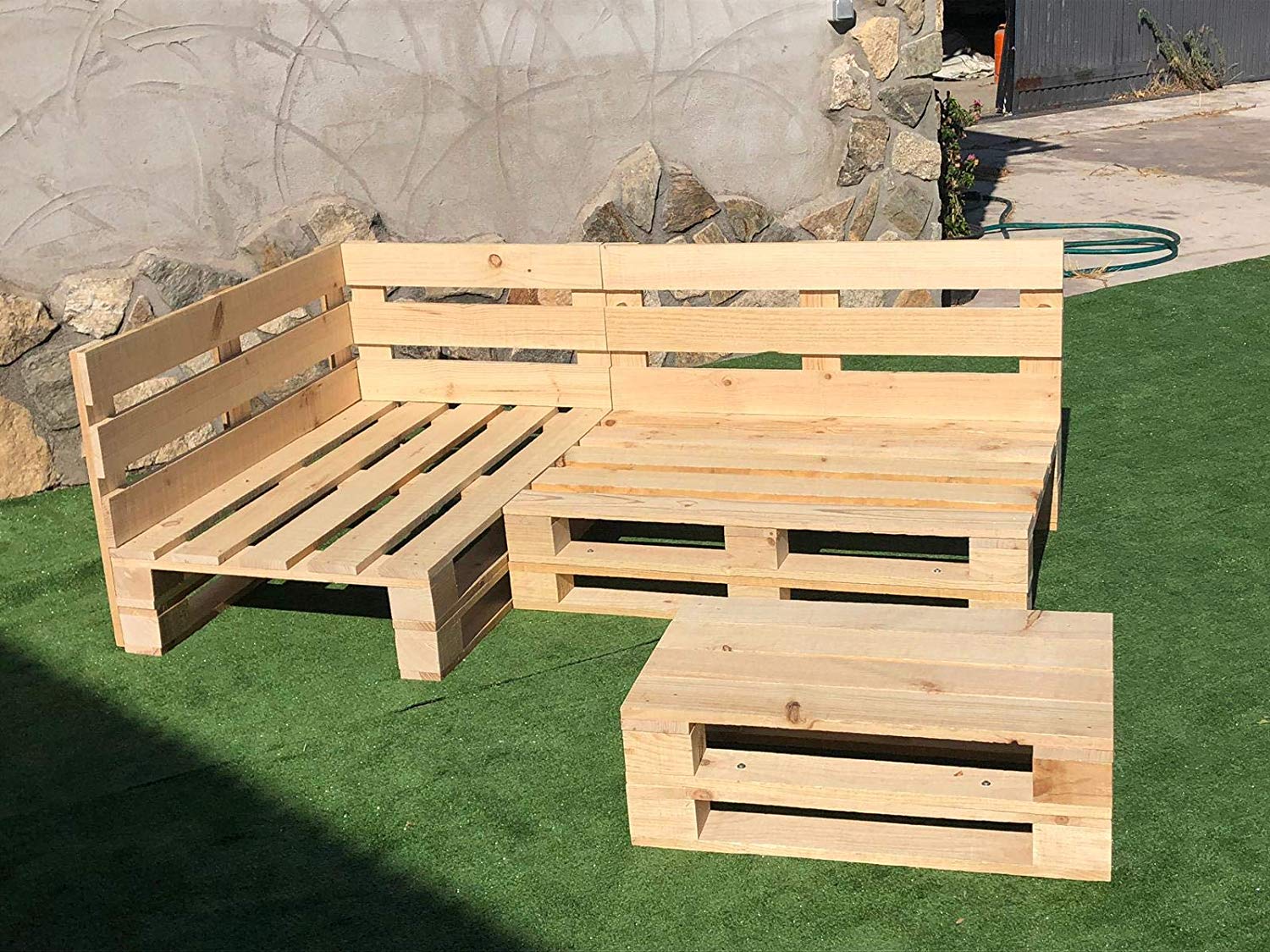 Este elegante conjunto de palets es ideal para colocar en el jardín o terraza y con acabados de 1ª calidad. Se integra perfectamente en el entorno