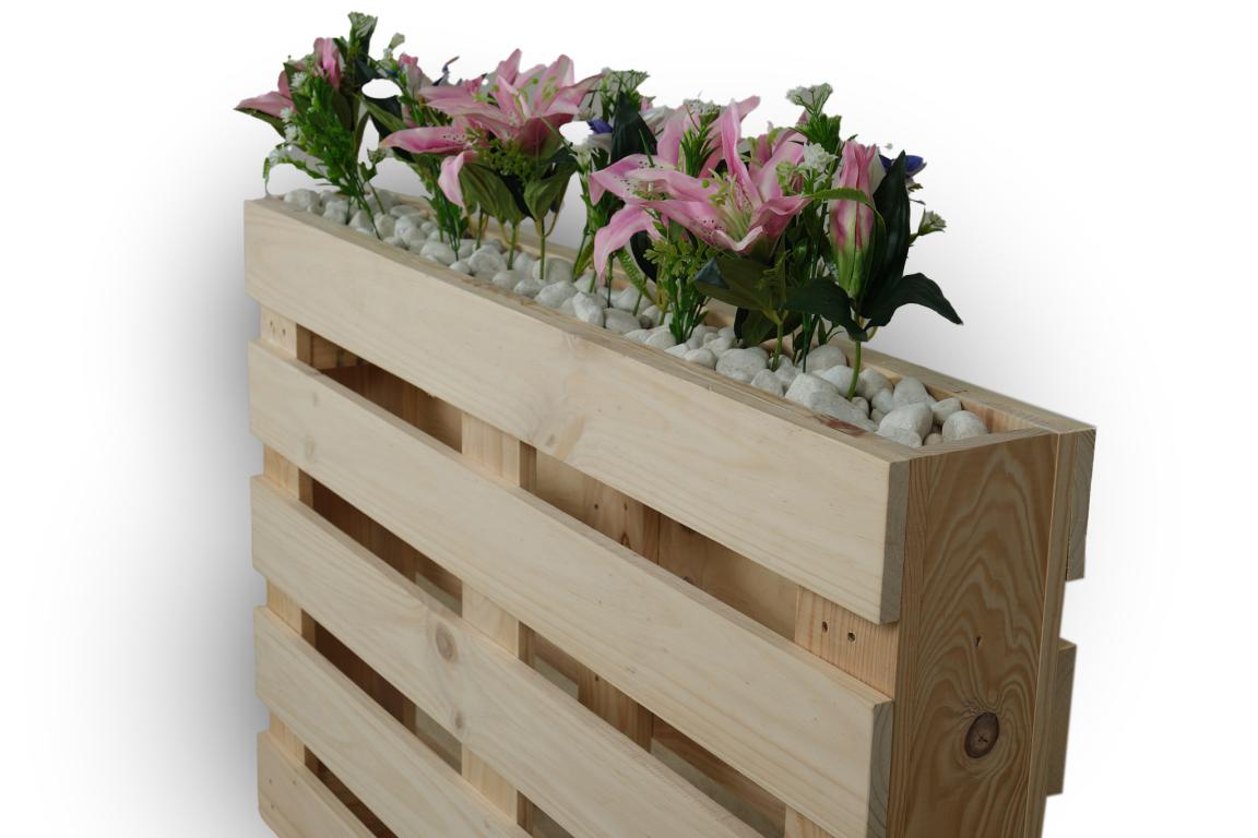 Este macetero / biombo de Palets es ideal para colocar en casa, jardín o terraza, elegante y con acabados de 1ª calidad.